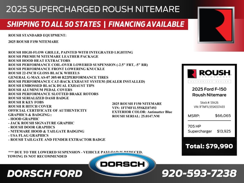 The 2025 Ford F-150 Roush Nitemare delivers bold styling and street-focused performance in a lowered, aggressive package. Built on the legendary F-150 foundation, the Nitemare adds Roush engineering and design enhancements that set it apart from any standard pickup.