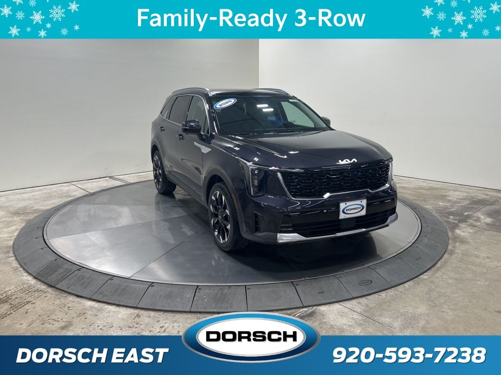 3rd row seats: split-bench, 4-Wheel Disc Brakes, 6 Speakers, ABS brakes, Air Conditioning, AM/FM radio: SiriusXM, Apple CarPlay & Android Auto, Auto High-beam Headlights, Auto-dimming Rear-View mirror, Automatic temperature control, Brake assist, Bumpers: body-color, Carpeted Floor Mats, Custom Wheels, Delay-off headlights, Driver door bin, Driver vanity mirror, Dual front impact airbags, Dual front side impact airbags, Electronic Stability Control, Emergency communication system: 911 Connect, Exterior Parking Camera Rear, Four wheel independent suspension, Front anti-roll bar, Front Bucket Seats, Front Center Armrest, Front dual zone A/C, Front fog lights, Front reading lights, Fully automatic headlights, Heated & Ventilated Front Bucket Seats, Heated door mirrors, Heated front seats, Illuminated entry, Knee airbag, Leather steering wheel, Low tire pressure warning, Navigation System, Occupant sensing airbag, Outside temperature display, Overhead airbag, Overhead console, Panic alarm, Passenger door bin, Passenger vanity mirror, Power door mirrors, Power driver seat, Power Liftgate, Power moonroof, Power passenger seat, Power steering, Power windows, Radio data system, Radio: AM/FM Standard Sound System, Rain sensing wipers, Rear anti-roll bar, Rear reading lights, Rear side impact airbag, Rear window defroster, Rear window wiper, Remote keyless entry, Security system, Speed control, Speed-sensing steering, Split folding rear seat, Spoiler, Steering wheel mounted audio controls, SynTex Artificial Leather Seat Trim, Tachometer, Telescoping steering wheel, Tilt steering wheel, Traction control, Trip computer, Turn signal indicator mirrors, Variably intermittent wipers, Ventilated front seats, Wheels: 20" Machine-Finished Gloss Black Alloy. Priced below KBB Fair Purchase Price! 20/29 City/Highway MPG 2025 Kia Sorento SX