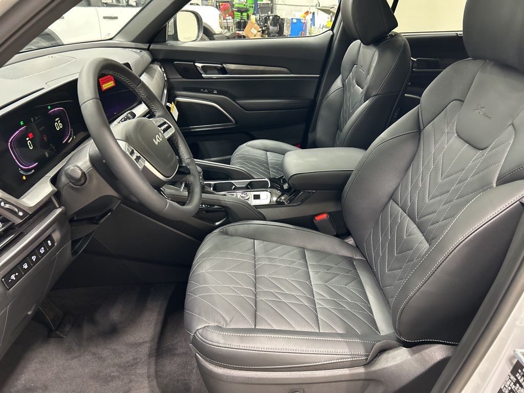 3rd row seats: split-bench, 4-Wheel Disc Brakes, 6 Speakers, ABS brakes, Air Conditioning, AM/FM radio: SiriusXM, Apple CarPlay & Android Auto, Auto High-beam Headlights, Auto-dimming Rear-View mirror, Auto-leveling suspension, Automatic temperature control, Brake assist, Bumpers: body-color, Carpeted Floor Mats, Compass, Custom Wheels, Delay-off headlights, Driver door bin, Driver vanity mirror, Dual front impact airbags, Dual front side impact airbags, Electronic Stability Control, Emergency communication system: 911 Connect, Exterior Parking Camera Rear, Four wheel independent suspension, Front anti-roll bar, Front Bucket Seats, Front Center Armrest, Front dual zone A/C, Front reading lights, Fully automatic headlights, Heated & Ventilated Front Bucket Seats, Heated door mirrors, Heated front seats, Heated steering wheel, Illuminated entry, Knee airbag, Leather Seat Trim, Leather Shift Knob, Leather steering wheel, Low tire pressure warning, Navigation System, Occupant sensing airbag, Outside temperature display, Overhead airbag, Overhead console, Panic alarm, Passenger door bin, Passenger vanity mirror, Power door mirrors, Power driver seat, Power Liftgate, Power moonroof, Power passenger seat, Power steering, Power windows, Radio data system, Radio: AM/FM Display Audio System, Rear air conditioning, Rear anti-roll bar, Rear audio controls, Rear reading lights, Rear side impact airbag, Rear window defroster, Rear window wiper, Reclining 3rd row seat, Remote keyless entry, Security system, Speed control, Speed-sensing steering, Split folding rear seat, Spoiler, Steering wheel mounted audio controls, Tachometer, Telescoping steering wheel, Tilt steering wheel, Traction control, Trip computer, Turn signal indicator mirrors, Variably intermittent wipers, Ventilated front seats, Wheels: 20" x 7.5" Black Finish X-LINE Exclusive. 2025 Kia Telluride EX X-Line Price includes: $1500 - KFA Dealer Choice Program: $1500 discount and 5.50% APR for 36 months. $30.20 per $1000 financed. Available to well qualified buyers who finance through Kia Finance America. 506. Exp. 11/03/2025