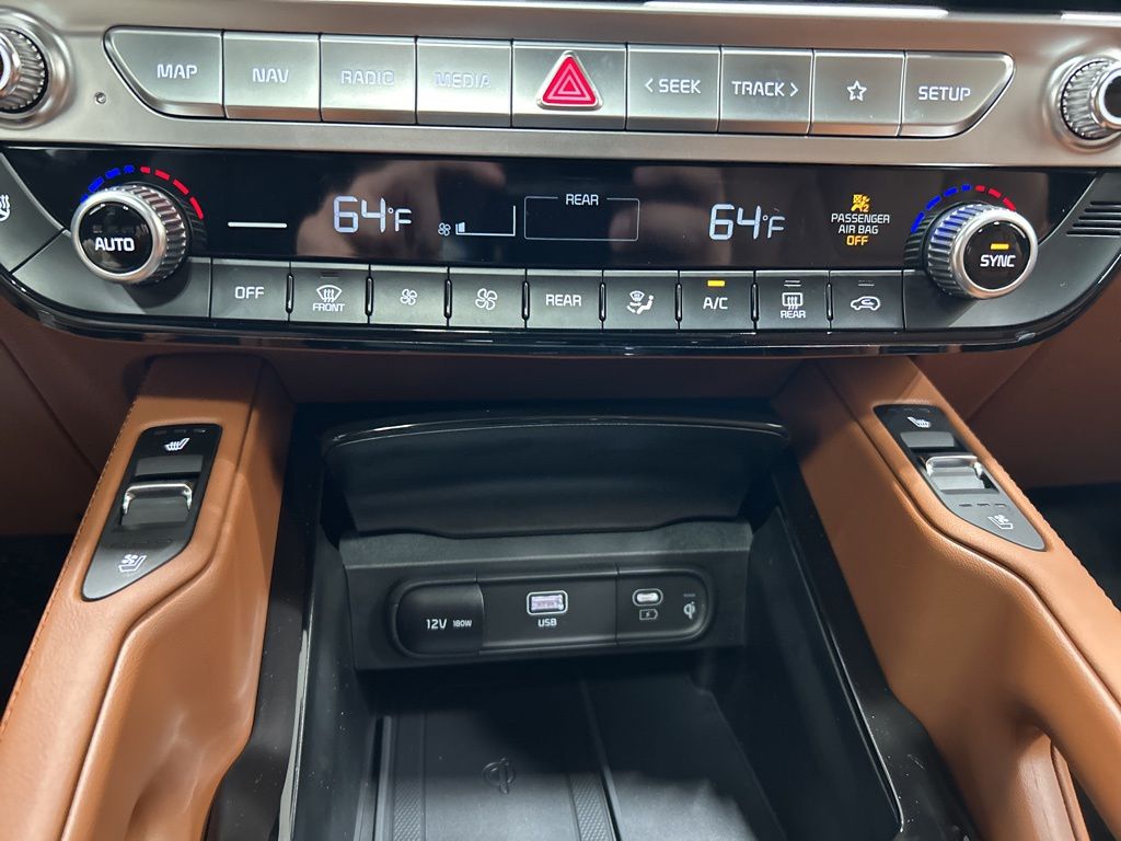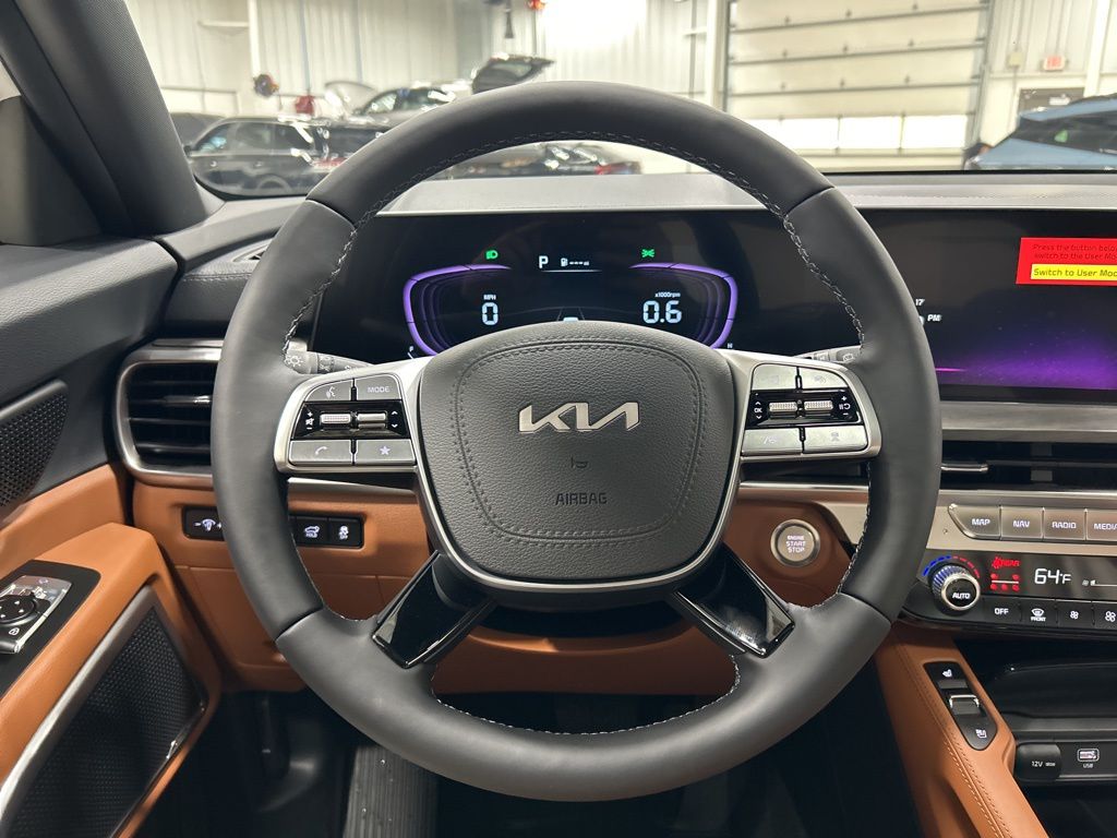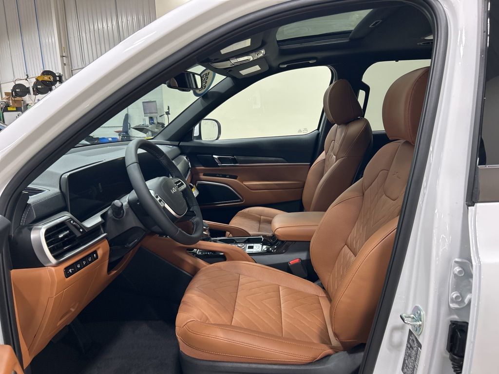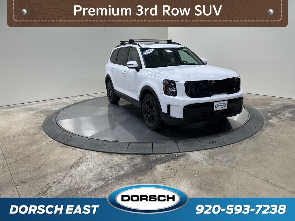 3rd row seats: split-bench, 4-Wheel Disc Brakes, 6 Speakers, ABS brakes, Air Conditioning, AM/FM radio: SiriusXM, Apple CarPlay & Android Auto, Auto High-beam Headlights, Auto-dimming Rear-View mirror, Auto-leveling suspension, Automatic temperature control, Brake assist, Bumpers: body-color, Carpeted Floor Mats, Compass, Cross Bars X-Line, Custom Wheels, Delay-off headlights, Driver door bin, Driver vanity mirror, Dual front impact airbags, Dual front side impact airbags, Electronic Stability Control, Emergency communication system: 911 Connect, Exterior Parking Camera Rear, Four wheel independent suspension, Front anti-roll bar, Front Bucket Seats, Front Center Armrest, Front dual zone A/C, Front reading lights, Fully automatic headlights, Heated & Ventilated Front Bucket Seats, Heated door mirrors, Heated front seats, Heated steering wheel, Illuminated entry, Knee airbag, Leather Seat Trim, Leather Shift Knob, Leather steering wheel, Low tire pressure warning, Mud Guard Kit, Navigation System, Occupant sensing airbag, Outside temperature display, Overhead airbag, Overhead console, Panic alarm, Passenger door bin, Passenger vanity mirror, Power door mirrors, Power driver seat, Power Liftgate, Power moonroof, Power passenger seat, Power steering, Power windows, Radio data system, Radio: AM/FM Display Audio System, Rear air conditioning, Rear anti-roll bar, Rear audio controls, Rear reading lights, Rear side impact airbag, Rear window defroster, Rear window wiper, Reclining 3rd row seat, Remote keyless entry, Security system, Speed control, Speed-sensing steering, Split folding rear seat, Spoiler, Steering wheel mounted audio controls, Tachometer, Telescoping steering wheel, Terracotta Interior Color Package, Tilt steering wheel, Tow Hitch w/Cover, Traction control, Trip computer, Turn signal indicator mirrors, Variably intermittent wipers, Ventilated front seats, Wheels: 20" x 7.5" Black Finish X-LINE Exclusive. New Price! 2025 Kia Telluride EX X-Line Price includes: $1500 - KFA Dealer Choice Program: $1500 discount and 5.50% APR for 36 months. $30.20 per $1000 financed. Available to well qualified buyers who finance through Kia Finance America. 506. Exp. 11/03/2025