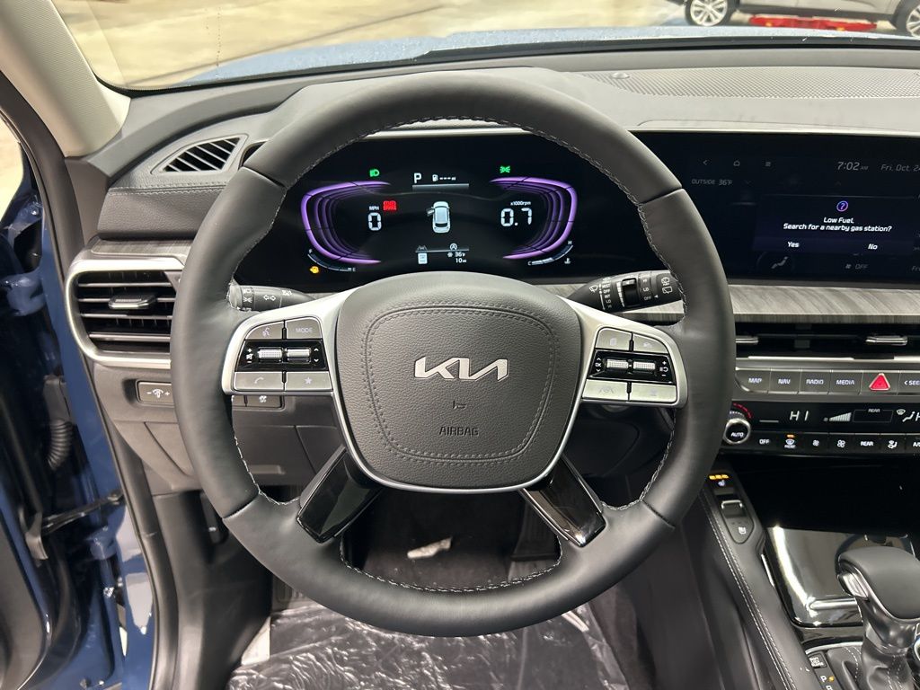 3rd row seats: split-bench, 4-Wheel Disc Brakes, 6 Speakers, ABS brakes, Air Conditioning, AM/FM radio: SiriusXM, Apple CarPlay & Android Auto, Auto High-beam Headlights, Auto-dimming Rear-View mirror, Automatic temperature control, Brake assist, Bumpers: body-color, Carpeted Floor Mats, Compass, Custom Wheels, Delay-off headlights, Driver door bin, Driver vanity mirror, Dual front impact airbags, Dual front side impact airbags, Electronic Stability Control, Emergency communication system: 911 Connect, Exterior Parking Camera Rear, Four wheel independent suspension, Front anti-roll bar, Front Bucket Seats, Front Center Armrest, Front dual zone A/C, Front reading lights, Fully automatic headlights, Heated & Ventilated Front Bucket Seats, Heated door mirrors, Heated front seats, Illuminated entry, Knee airbag, Leather Seat Trim, Leather Shift Knob, Leather steering wheel, Low tire pressure warning, Navigation System, Occupant sensing airbag, Outside temperature display, Overhead airbag, Overhead console, Panic alarm, Passenger door bin, Passenger vanity mirror, Power door mirrors, Power driver seat, Power Liftgate, Power moonroof, Power passenger seat, Power steering, Power windows, Radio data system, Radio: AM/FM Display Audio System, Rear air conditioning, Rear anti-roll bar, Rear audio controls, Rear reading lights, Rear seat center armrest, Rear side impact airbag, Rear window defroster, Rear window wiper, Reclining 3rd row seat, Remote keyless entry, Security system, Speed control, Speed-sensing steering, Split folding rear seat, Spoiler, Steering wheel mounted audio controls, Tachometer, Telescoping steering wheel, Tilt steering wheel, Tow Hitch w/Cover, Traction control, Trip computer, Turn signal indicator mirrors, Variably intermittent wipers, Ventilated front seats, Wheels: 20" x 7.5" Black Finish. 2025 Kia Telluride EX Price includes: $1500 - KFA Dealer Choice Program: $1500 discount and 5.50% APR for 36 months. $30.20 per $1000 financed. Available to well qualified buyers who finance through Kia Finance America. 506. Exp. 11/03/2025