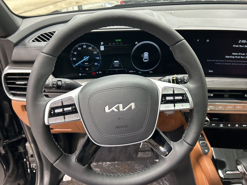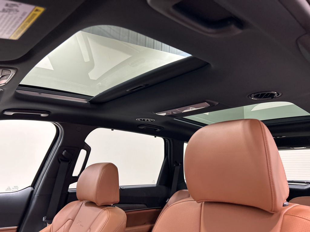 10 Speakers, 3rd row seats: split-bench, 4-Wheel Disc Brakes, ABS brakes, Air Conditioning, AM/FM radio: SiriusXM, Apple CarPlay & Android Auto, Auto High-beam Headlights, Auto-dimming Rear-View mirror, Auto-leveling suspension, Automatic temperature control, Brake assist, Bumpers: body-color, Carpeted Floor Mats, Compass, Custom Wheels, Delay-off headlights, Driver door bin, Driver vanity mirror, Dual front impact airbags, Dual front side impact airbags, Electronic Stability Control, Emergency communication system: 911 Connect, Exterior Parking Camera Rear, Four wheel independent suspension, Front anti-roll bar, Front Bucket Seats, Front Center Armrest, Front dual zone A/C, Front fog lights, Front reading lights, Fully automatic headlights, Garage door transmitter: HomeLink, harman/kardon Speakers, Heated & Ventilated Front Bucket Seats, Heated door mirrors, Heated front seats, Heated steering wheel, Illuminated entry, Knee airbag, Leather Seat Trim, Leather Shift Knob, Leather steering wheel, Low tire pressure warning, Memory seat, Navigation System, Occupant sensing airbag, Outside temperature display, Overhead airbag, Overhead console, Panic alarm, Passenger door bin, Passenger vanity mirror, Power door mirrors, Power driver seat, Power Liftgate, Power moonroof, Power passenger seat, Power steering, Power windows, Radio data system, Radio: AM/FM Harman Kardon Audio System, Rear air conditioning, Rear anti-roll bar, Rear audio controls, Rear reading lights, Rear side impact airbag, Rear window defroster, Rear window wiper, Reclining 3rd row seat, Remote keyless entry, Security system, Speed control, Speed-sensing steering, Split folding rear seat, Spoiler, Steering wheel mounted audio controls, Tachometer, Telescoping steering wheel, Terracotta Interior Color Package, Tilt steering wheel, Tow Hitch w/Cover, Traction control, Trip computer, Turn signal indicator mirrors, Variably intermittent wipers, Ventilated front seats, Wheels: 20" x 7.5" Black Finish X-LINE Exclusive. 2025 Kia Telluride SX X-Line