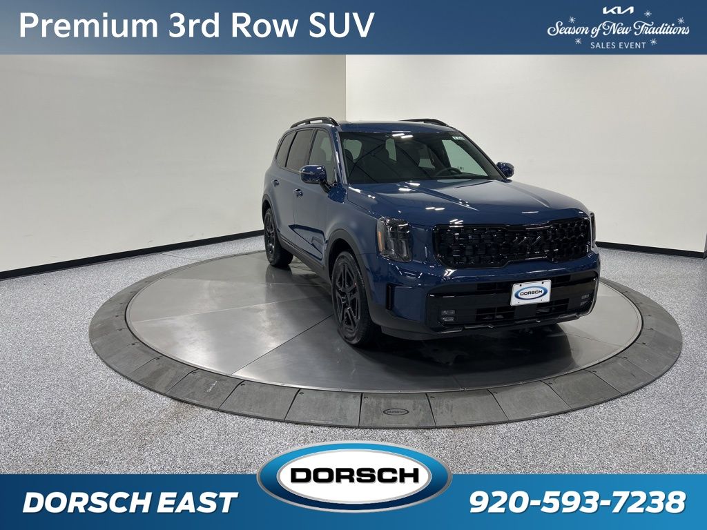 10 Speakers, 3rd row seats: split-bench, 4-Wheel Disc Brakes, ABS brakes, Air Conditioning, AM/FM radio: SiriusXM, Apple CarPlay & Android Auto, Auto High-beam Headlights, Auto-dimming Rear-View mirror, Auto-leveling suspension, Automatic temperature control, Brake assist, Bumpers: body-color, Cargo Cover, Carpet Cargo Mat w/Seatback Protection, Carpeted Floor Mats, Compass, Custom Wheels, Delay-off headlights, Driver door bin, Driver vanity mirror, Dual front impact airbags, Dual front side impact airbags, Electronic Stability Control, Emergency communication system: 911 Connect, Exterior Parking Camera Rear, Four wheel independent suspension, Front anti-roll bar, Front Bucket Seats, Front Center Armrest, Front dual zone A/C, Front fog lights, Front reading lights, Fully automatic headlights, Garage door transmitter: HomeLink, harman/kardon Speakers, Heads-Up Display, Heated & Ventilated Front Bucket Seats, Heated door mirrors, Heated front seats, Heated rear seats, Heated steering wheel, Illuminated entry, Knee airbag, Leather Shift Knob, Leather steering wheel, Low tire pressure warning, Memory seat, Nappa Leather Seat Trim, Navigation System, Occupant sensing airbag, Outside temperature display, Overhead airbag, Overhead console, Panic alarm, Passenger door bin, Passenger vanity mirror, Power door mirrors, Power driver seat, Power Liftgate, Power moonroof, Power passenger seat, Power steering, Power windows, Radio data system, Radio: AM/FM Harman Kardon Audio System, Rain sensing wipers, Rear air conditioning, Rear anti-roll bar, Rear audio controls, Rear reading lights, Rear side impact airbag, Rear window defroster, Rear window wiper, Reclining 3rd row seat, Remote keyless entry, Security system, Speed control, Speed-sensing steering, Split folding rear seat, Spoiler, Steering wheel mounted audio controls, Tachometer, Telescoping steering wheel, Tilt steering wheel, Traction control, Trip computer, Turn signal indicator mirrors, Variably intermittent wipers, Ventilated front seats, Ventilated rear seats, Wheels: 20" x 7.5" Black Finish X-LINE Exclusive. New Price! 2025 Kia Telluride SX-Prestige X-Line Price includes: $2000 - KFA Dealer Choice Program: $2000 discount and 5.25% APR for 36 months. $30.08 per $1000 financed. Available to well qualified buyers who finance through Kia Finance America. 506. Exp. 01/02/2026