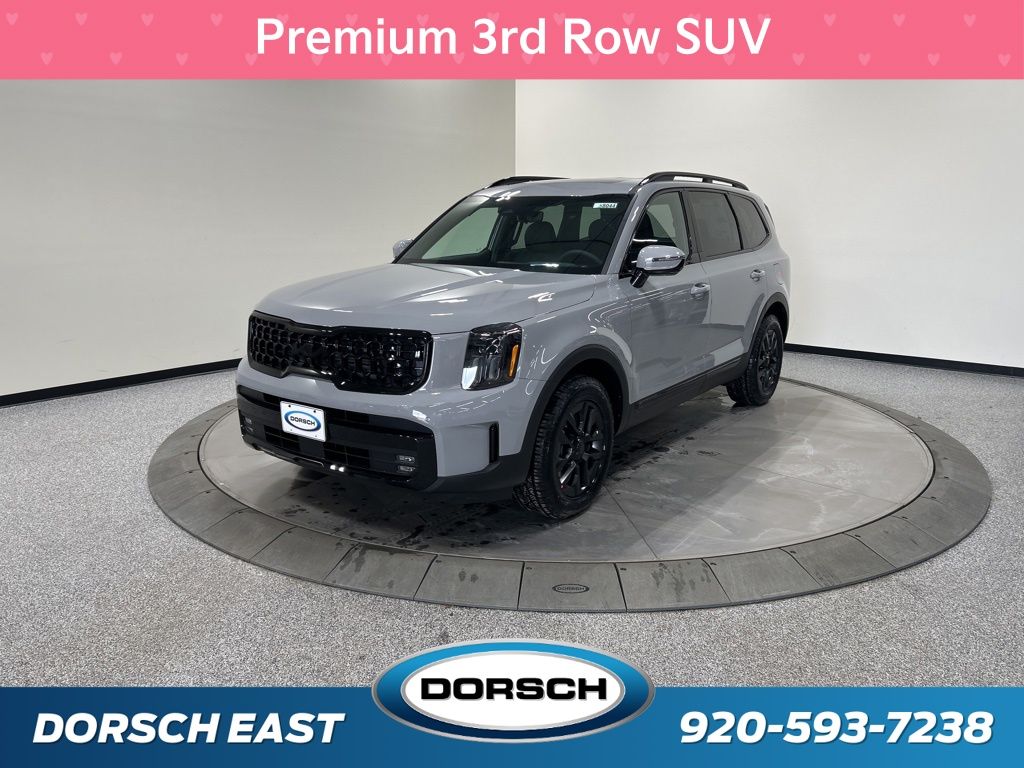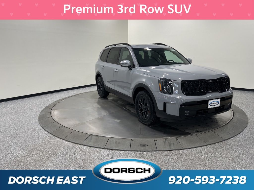 10 Speakers, 3rd row seats: split-bench, 4-Wheel Disc Brakes, ABS brakes, Air Conditioning, AM/FM radio: SiriusXM, Apple CarPlay & Android Auto, Auto High-beam Headlights, Auto-dimming Rear-View mirror, Auto-leveling suspension, Automatic temperature control, Brake assist, Bumpers: body-color, Carpeted Floor Mats, Compass, Custom Wheels, Delay-off headlights, Driver door bin, Driver vanity mirror, Dual front impact airbags, Dual front side impact airbags, Electronic Stability Control, Emergency communication system: 911 Connect, Exterior Parking Camera Rear, Four wheel independent suspension, Front anti-roll bar, Front Bucket Seats, Front Center Armrest, Front dual zone A/C, Front fog lights, Front reading lights, Fully automatic headlights, Garage door transmitter: HomeLink, harman/kardon Speakers, Heads-Up Display, Heated & Ventilated Front Bucket Seats, Heated door mirrors, Heated front seats, Heated rear seats, Heated steering wheel, Illuminated entry, Knee airbag, Leather Shift Knob, Leather steering wheel, Low tire pressure warning, Memory seat, Nappa Leather Seat Trim, Navigation System, Occupant sensing airbag, Outside temperature display, Overhead airbag, Overhead console, Panic alarm, Passenger door bin, Passenger vanity mirror, Power door mirrors, Power driver seat, Power Liftgate, Power moonroof, Power passenger seat, Power steering, Power windows, Radio data system, Radio: AM/FM Harman Kardon Audio System, Rain sensing wipers, Rear air conditioning, Rear anti-roll bar, Rear audio controls, Rear reading lights, Rear side impact airbag, Rear window defroster, Rear window wiper, Reclining 3rd row seat, Remote keyless entry, Security system, Speed control, Speed-sensing steering, Split folding rear seat, Spoiler, Steering wheel mounted audio controls, Tachometer, Telescoping steering wheel, Tilt steering wheel, Tow Hitch w/Cover, Traction control, Trip computer, Turn signal indicator mirrors, Variably intermittent wipers, Ventilated front seats, Ventilated rear seats, Wheels: 18" x 7.5" Black Finish X-PRO Exclusive. 2025 Kia Telluride SX-Prestige X-Pro