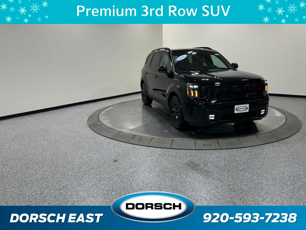 10 Speakers, 3rd row seats: split-bench, 4-Wheel Disc Brakes, ABS brakes, Air Conditioning, AM/FM radio: SiriusXM, Apple CarPlay & Android Auto, Auto High-beam Headlights, Auto-dimming Rear-View mirror, Auto-leveling suspension, Automatic temperature control, Brake assist, Bumpers: body-color, Carpeted Floor Mats, Compass, Custom Wheels, Delay-off headlights, Driver door bin, Driver vanity mirror, Dual front impact airbags, Dual front side impact airbags, Electronic Stability Control, Emergency communication system: 911 Connect, Exterior Parking Camera Rear, Four wheel independent suspension, Front anti-roll bar, Front Bucket Seats, Front Center Armrest, Front dual zone A/C, Front fog lights, Front reading lights, Fully automatic headlights, Garage door transmitter: HomeLink, harman/kardon Speakers, Heated & Ventilated Front Bucket Seats, Heated door mirrors, Heated front seats, Illuminated entry, Knee airbag, Leather Shift Knob, Leather steering wheel, Low tire pressure warning, Memory seat, Navigation System, Occupant sensing airbag, Outside temperature display, Overhead airbag, Overhead console, Panic alarm, Passenger door bin, Passenger vanity mirror, Power door mirrors, Power driver seat, Power Liftgate, Power moonroof, Power passenger seat, Power steering, Power windows, Radio data system, Radio: AM/FM Harman Kardon Audio System, Rear air conditioning, Rear anti-roll bar, Rear audio controls, Rear reading lights, Rear side impact airbag, Rear window defroster, Rear window wiper, Reclining 3rd row seat, Remote keyless entry, Security system, Speed control, Speed-sensing steering, Split folding rear seat, Spoiler, Steering wheel mounted audio controls, Tachometer, Telescoping steering wheel, Tilt steering wheel, Traction control, Trip computer, Turn signal indicator mirrors, Variably intermittent wipers, Ventilated front seats. New Price! 2025 Kia Telluride SX-Prestige X-Pro Price includes: $3000 - KFA Dealer Choice Program: $3000 discount and 5.25% APR for 36 months. $30.08 per $1000 financed. Available to well qualified buyers who finance through Kia Finance America. 506. Exp. 02/02/2026
