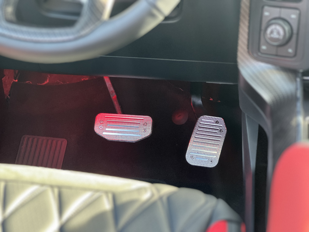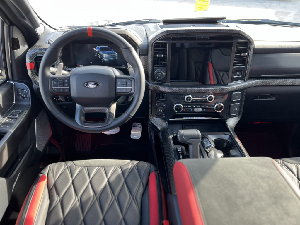 Inside, the performance-driven design continues with custom red-accented interior touches that elevate the cabin. A performance steering wheel with integrated paddle shifters puts precision control right at your fingertips, creating a driving experience thats as refined as it is exhilarating.