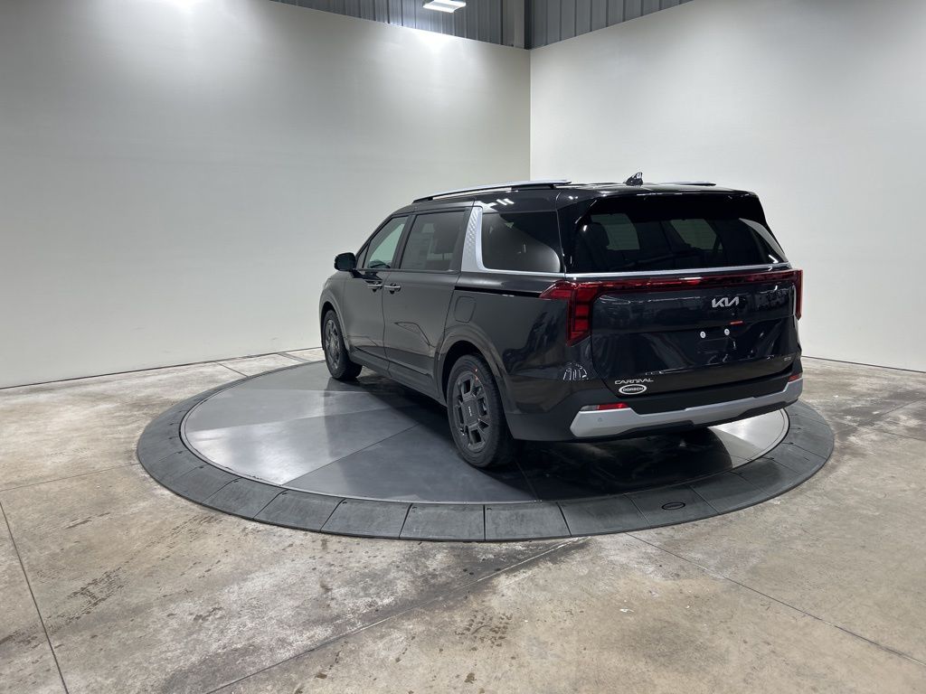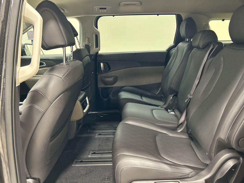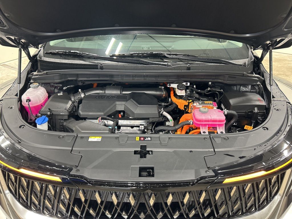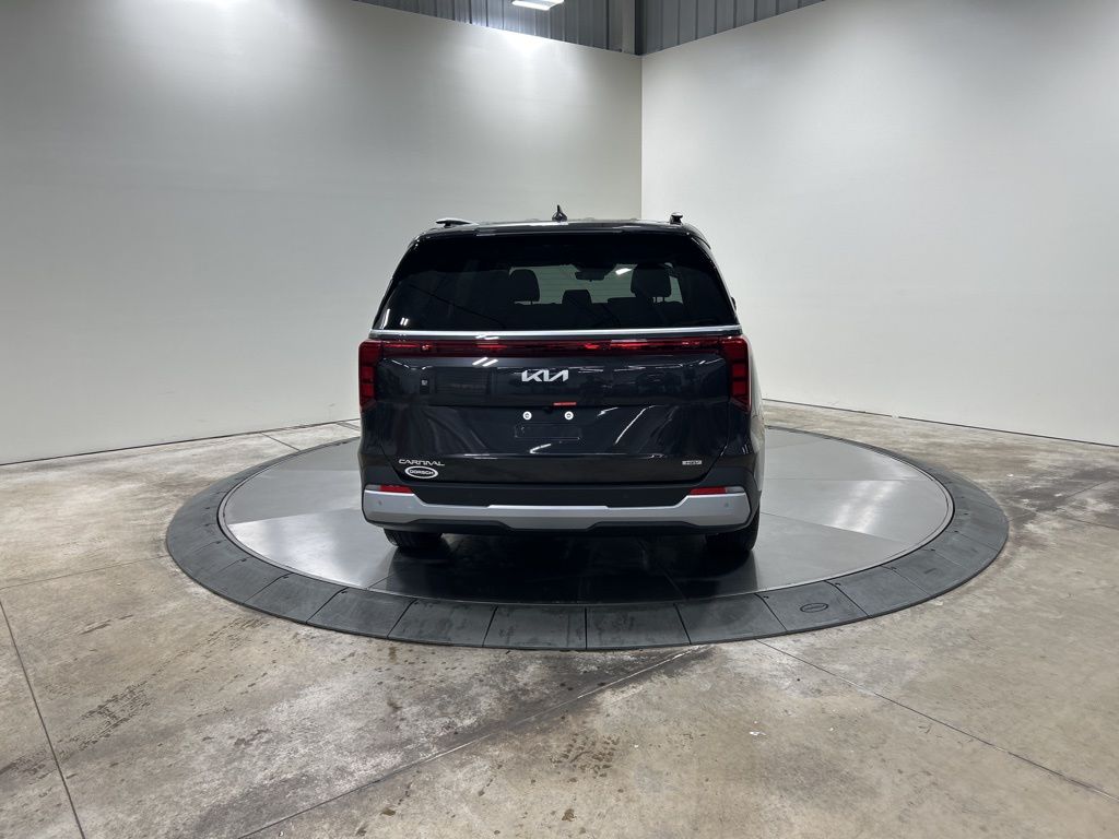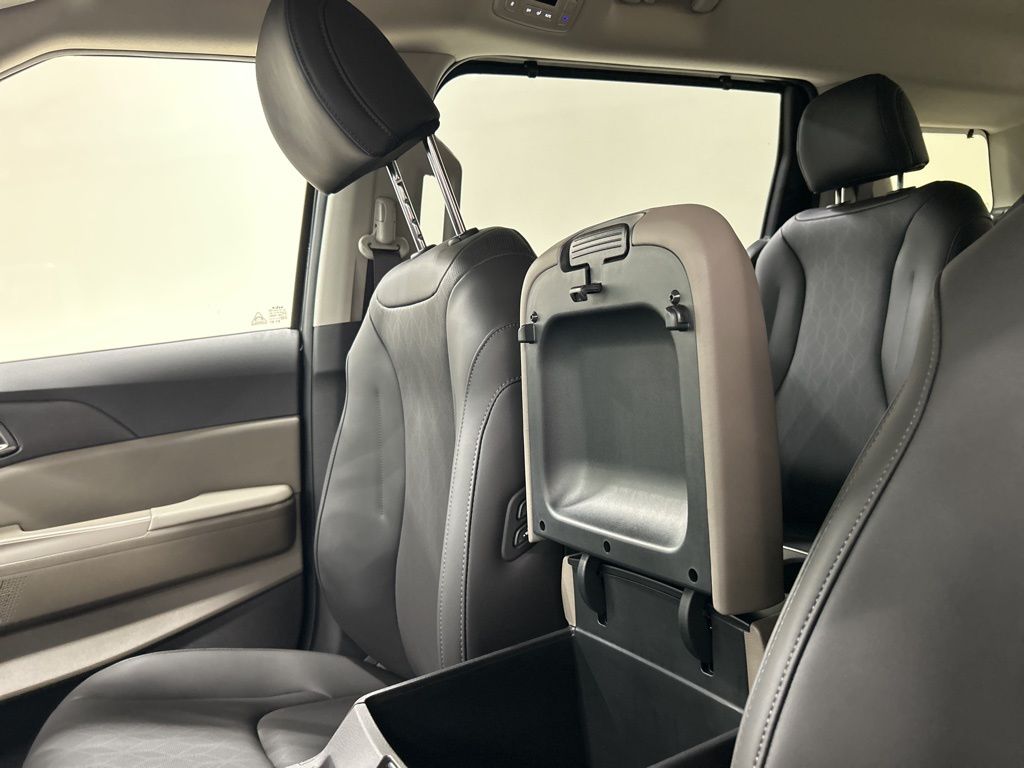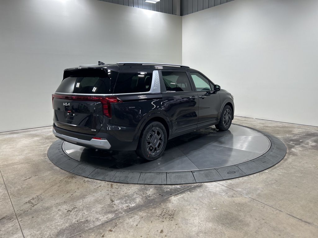 1.6L I4 DGI Hybrid Turbocharged DOHC 16V LEV3-SULEV30, 3rd row seats: split-bench, 4-Wheel Disc Brakes, 8 Speakers, ABS brakes, Air Conditioning, AM/FM radio: SiriusXM, Apple CarPlay & Android Auto, Artificial Leather Seat Trim, Auto High-beam Headlights, Automatic temperature control, Brake assist, Bumpers: body-color, Carpeted Floor Mats (8-Passenger), Compass, Custom Wheels, Delay-off headlights, Driver door bin, Driver vanity mirror, Dual front impact airbags, Dual front side impact airbags, Electronic Stability Control, Emergency communication system, Exterior Parking Camera Rear, Four wheel independent suspension, Front anti-roll bar, Front Bucket Seats, Front Center Armrest, Front dual zone A/C, Front reading lights, Fully automatic headlights, Heated door mirrors, Heated Front Bucket Seats, Heated front seats, Illuminated entry, Knee airbag, Leather Shift Knob, Leather steering wheel, Low tire pressure warning, Memory seat, Navigation System, Occupant sensing airbag, Outside temperature display, Overhead airbag, Overhead console, Panic alarm, Passenger door bin, Passenger vanity mirror, Power door mirrors, Power driver seat, Power Liftgate, Power passenger seat, Power steering, Power windows, Radio: Navigation System w/SiriusXM, Rear air conditioning, Rear anti-roll bar, Rear reading lights, Rear window defroster, Rear window wiper, Reclining 3rd row seat, Remote keyless entry, Security system, Speed control, Speed-sensing steering, Split folding rear seat, Spoiler, Steering wheel mounted audio controls, Tachometer, Telescoping steering wheel, Tilt steering wheel, Traction control, Trip computer, Turn signal indicator mirrors, Variably intermittent wipers, Wheels: 19" Black Alloy, 1.6L I4 DGI Hybrid Turbocharged DOHC 16V LEV3-SULEV30. 34/31 City/Highway MPG 2026 Kia Carnival Hybrid EX