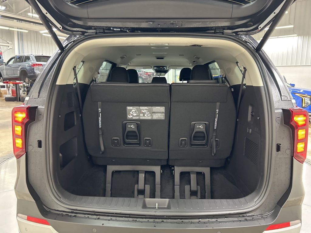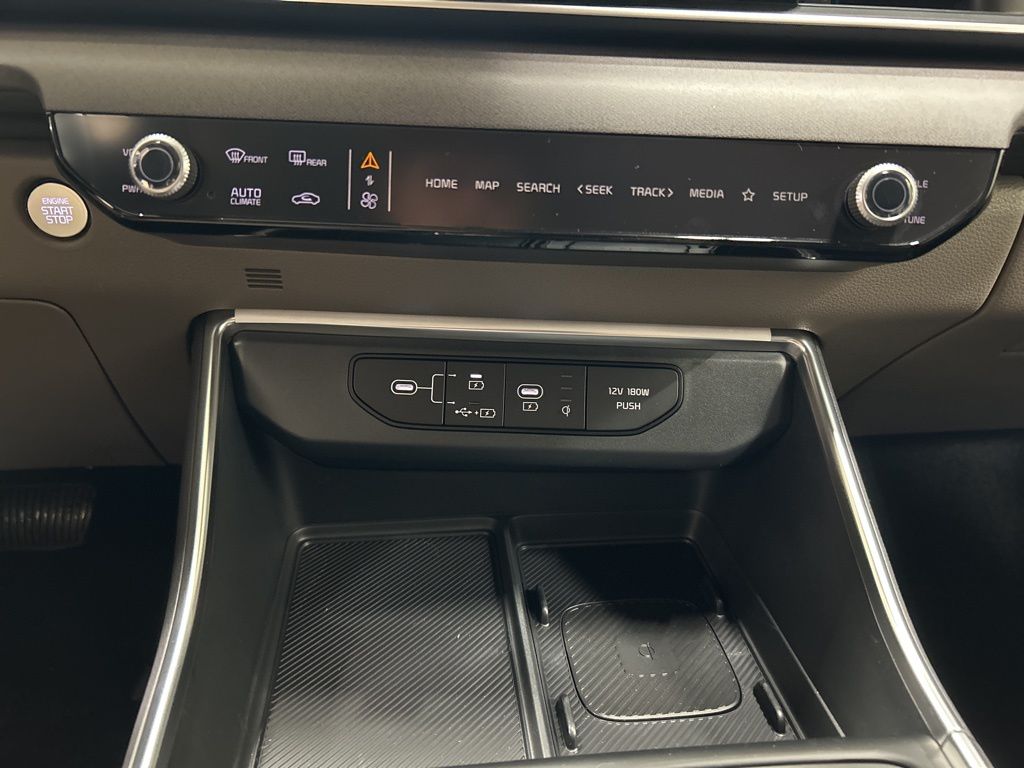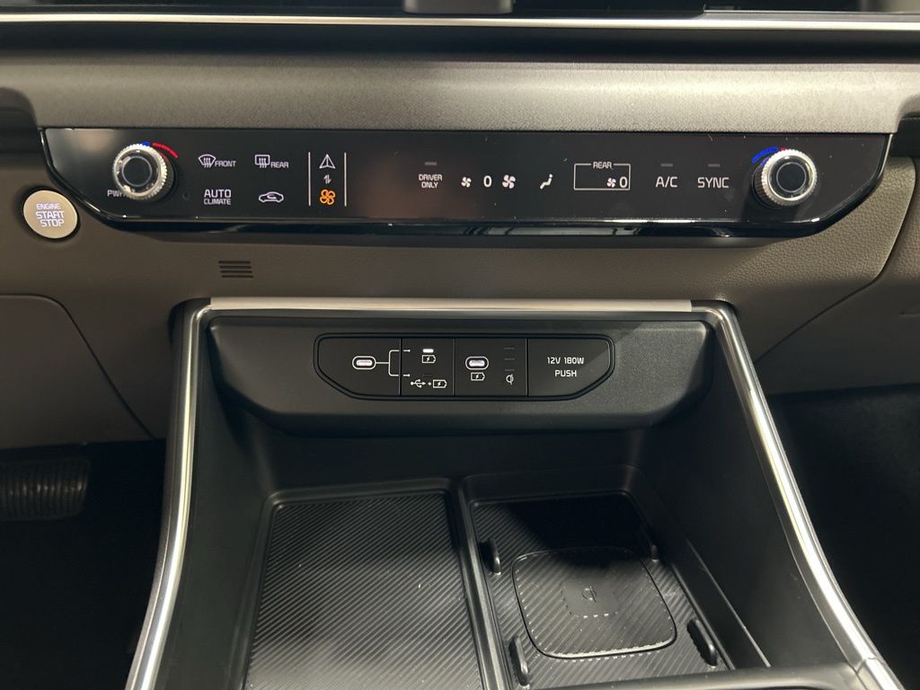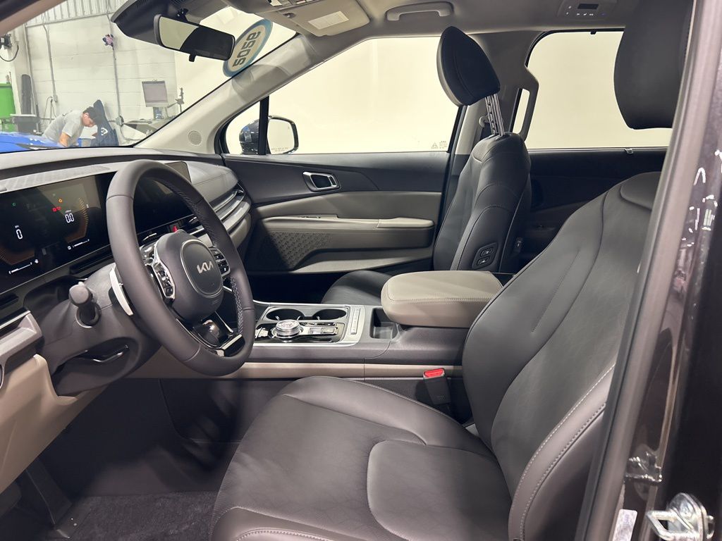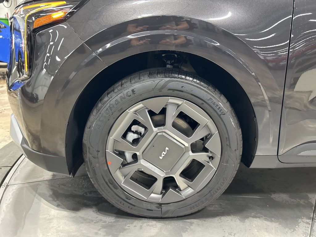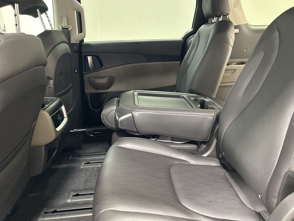 1.6L I4 DGI Hybrid Turbocharged DOHC 16V LEV3-SULEV30, 3rd row seats: split-bench, 4-Wheel Disc Brakes, 8 Speakers, ABS brakes, Air Conditioning, AM/FM radio: SiriusXM, Apple CarPlay & Android Auto, Artificial Leather Seat Trim, Auto High-beam Headlights, Automatic temperature control, Brake assist, Bumpers: body-color, Carpeted Floor Mats (8-Passenger), Compass, Custom Wheels, Delay-off headlights, Driver door bin, Driver vanity mirror, Dual front impact airbags, Dual front side impact airbags, Electronic Stability Control, Emergency communication system, Exterior Parking Camera Rear, Four wheel independent suspension, Front anti-roll bar, Front Bucket Seats, Front Center Armrest, Front dual zone A/C, Front reading lights, Fully automatic headlights, Heated door mirrors, Heated Front Bucket Seats, Heated front seats, Illuminated entry, Knee airbag, Leather Shift Knob, Leather steering wheel, Low tire pressure warning, Memory seat, Navigation System, Occupant sensing airbag, Outside temperature display, Overhead airbag, Overhead console, Panic alarm, Passenger door bin, Passenger vanity mirror, Power door mirrors, Power driver seat, Power Liftgate, Power passenger seat, Power steering, Power windows, Radio: Navigation System w/SiriusXM, Rear air conditioning, Rear anti-roll bar, Rear reading lights, Rear window defroster, Rear window wiper, Reclining 3rd row seat, Remote keyless entry, Security system, Speed control, Speed-sensing steering, Split folding rear seat, Spoiler, Steering wheel mounted audio controls, Tachometer, Telescoping steering wheel, Tilt steering wheel, Traction control, Trip computer, Turn signal indicator mirrors, Variably intermittent wipers, Wheels: 19" Black Alloy, 1.6L I4 DGI Hybrid Turbocharged DOHC 16V LEV3-SULEV30. 34/31 City/Highway MPG 2026 Kia Carnival Hybrid EX