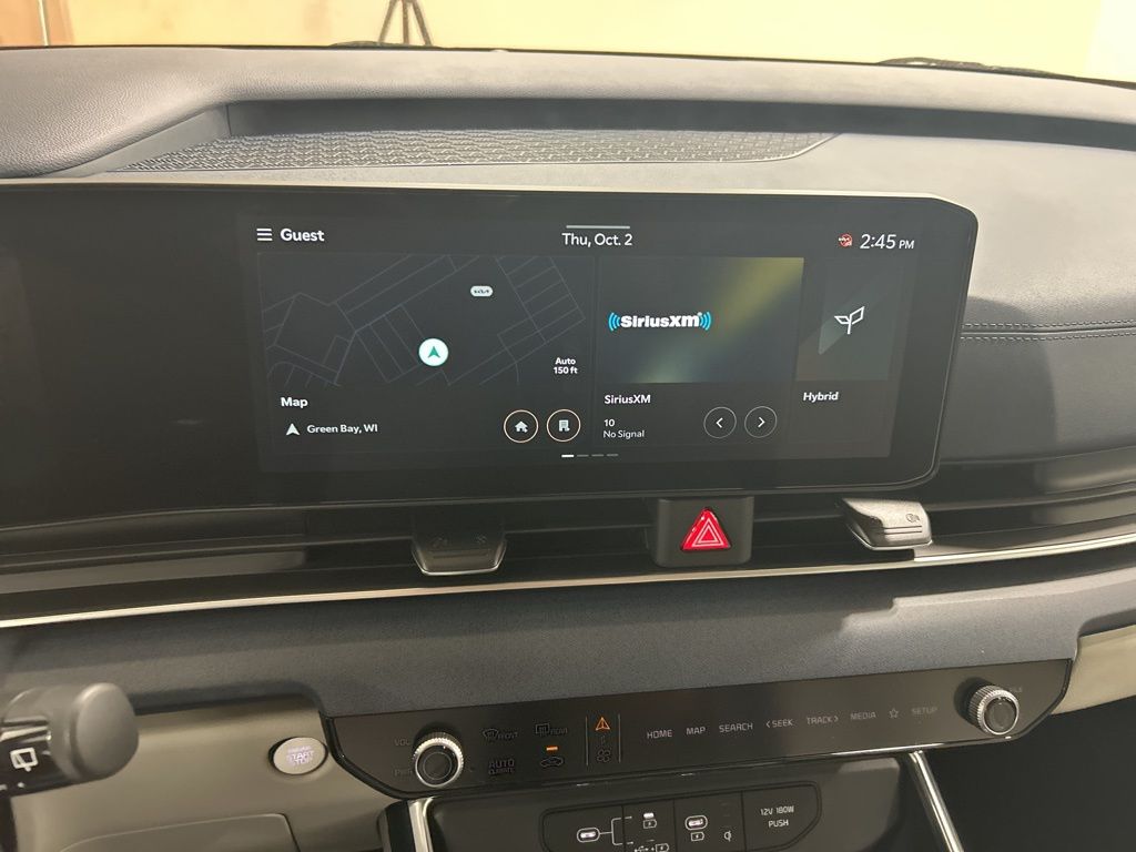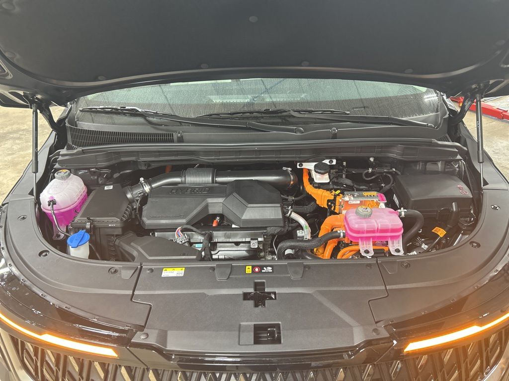 1.6L I4 DGI Hybrid Turbocharged DOHC 16V LEV3-SULEV30, 3rd row seats: split-bench, 4-Wheel Disc Brakes, 8 Speakers, ABS brakes, Air Conditioning, All Weather Floor Mats (8-Passenger), AM/FM radio: SiriusXM, Apple CarPlay & Android Auto, Artificial Leather Seat Trim, Auto High-beam Headlights, Automatic temperature control, Brake assist, Bumpers: body-color, Compass, Custom Wheels, Delay-off headlights, Driver door bin, Driver vanity mirror, Dual front impact airbags, Dual front side impact airbags, Electronic Stability Control, Emergency communication system, Exterior Parking Camera Rear, Four wheel independent suspension, Front anti-roll bar, Front Bucket Seats, Front Center Armrest, Front dual zone A/C, Front reading lights, Fully automatic headlights, Heated door mirrors, Heated Front Bucket Seats, Heated front seats, Illuminated entry, Knee airbag, Leather Shift Knob, Leather steering wheel, Low tire pressure warning, Memory seat, Navigation System, Occupant sensing airbag, Outside temperature display, Overhead airbag, Overhead console, Panic alarm, Passenger door bin, Passenger vanity mirror, Power door mirrors, Power driver seat, Power Liftgate, Power passenger seat, Power steering, Power windows, Rear air conditioning, Rear anti-roll bar, Rear reading lights, Rear window defroster, Rear window wiper, Reclining 3rd row seat, Remote keyless entry, Security system, Speed control, Speed-sensing steering, Split folding rear seat, Spoiler, Steering wheel mounted audio controls, Tachometer, Telescoping steering wheel, Tilt steering wheel, Traction control, Trip computer, Turn signal indicator mirrors, Variably intermittent wipers, Wheels: 19" Black Alloy, 1.6L I4 DGI Hybrid Turbocharged DOHC 16V LEV3-SULEV30. 34/31 City/Highway MPG 2026 Kia Carnival Hybrid EX