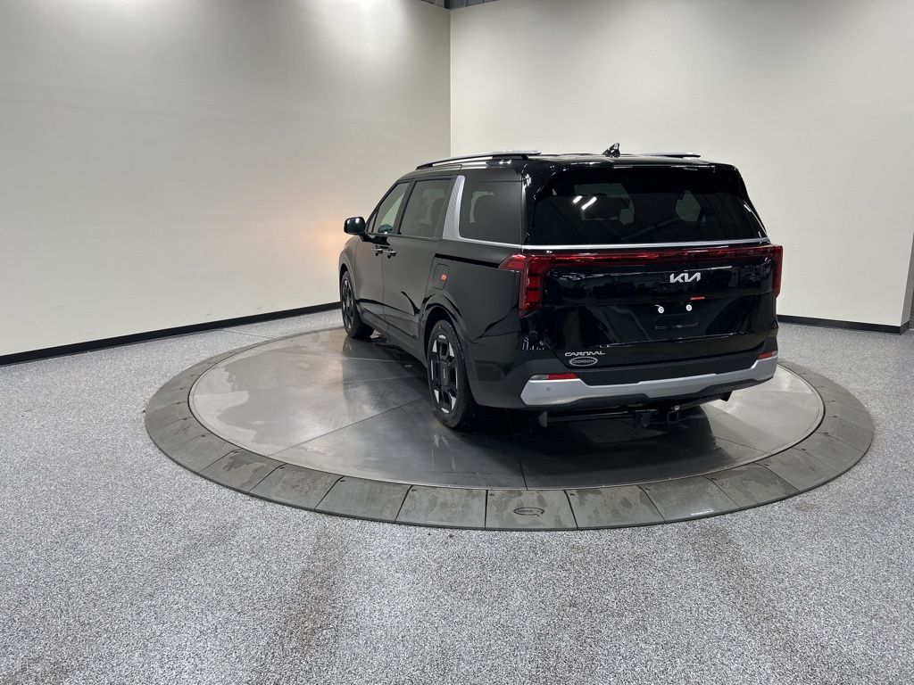 3.51 Axle Ratio, 3rd row seats: split-bench, 4-Wheel Disc Brakes, 8 Speakers, ABS brakes, Air Conditioning, AM/FM radio: SiriusXM, Apple CarPlay & Android Auto, Artificial Leather Seat Trim, Auto High-beam Headlights, Auto-Dimming Mirror with HomeLink, Automatic temperature control, Brake assist, Bumpers: body-color, Carpeted Floor Mats (8-Passenger), Compass, Custom Wheels, Delay-off headlights, Driver door bin, Driver vanity mirror, Dual front impact airbags, Dual front side impact airbags, Electronic Stability Control, Emergency communication system, Exterior Parking Camera Rear, Four wheel independent suspension, Front anti-roll bar, Front Bucket Seats, Front Center Armrest, Front dual zone A/C, Front reading lights, Fully automatic headlights, Heated door mirrors, Heated Front Bucket Seats, Heated front seats, Illuminated entry, Knee airbag, Leather Shift Knob, Leather steering wheel, Low tire pressure warning, Memory seat, Navigation System, Occupant sensing airbag, Outside temperature display, Overhead airbag, Overhead console, Panic alarm, Passenger door bin, Passenger vanity mirror, Power door mirrors, Power driver seat, Power Liftgate, Power passenger seat, Power steering, Power windows, Radio: AM/FM/HD Audio System, Rear air conditioning, Rear anti-roll bar, Rear reading lights, Rear window defroster, Rear window wiper, Reclining 3rd row seat, Remote keyless entry, Security system, Speed control, Speed-sensing steering, Split folding rear seat, Spoiler, Steering wheel mounted audio controls, Tachometer, Telescoping steering wheel, Tilt steering wheel, Tow Hitch, Traction control, Trip computer, Turn signal indicator mirrors, Variably intermittent wipers, Wheels: 7.5J x 19" Machine-Finished Alloy. 18/26 City/Highway MPG 2026 Kia Carnival EX