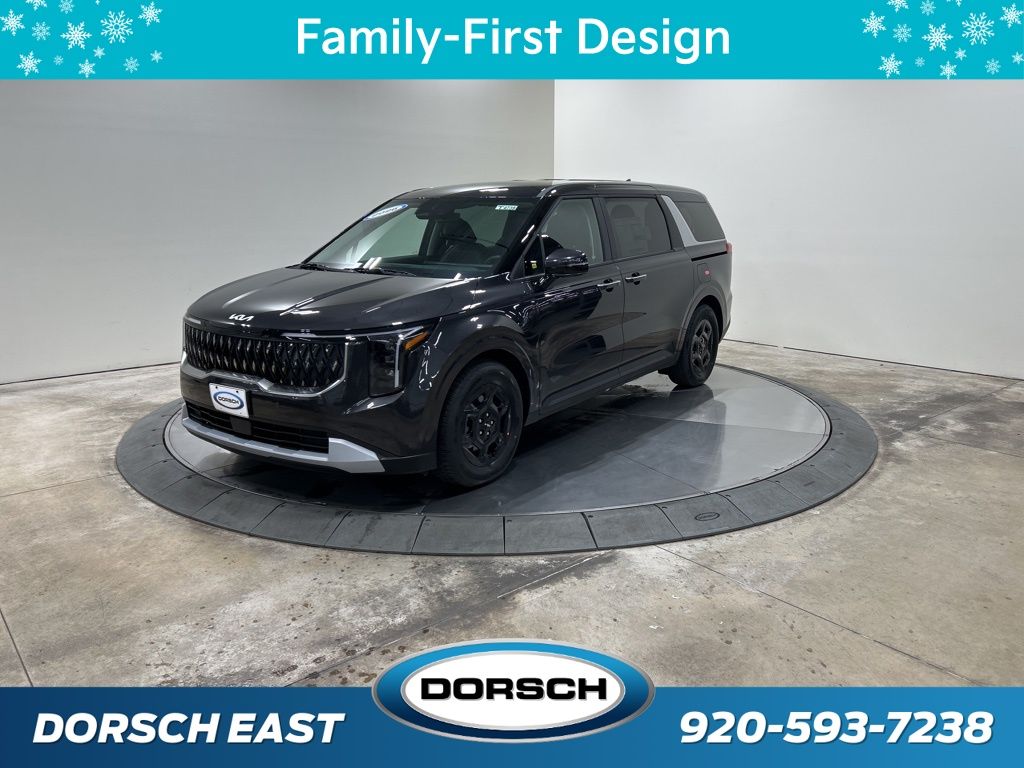 3.51 Axle Ratio, 3rd row seats: split-bench, 4-Wheel Disc Brakes, 6 Speakers, 6.5J x 17" Alloy Wheels, ABS brakes, Air Conditioning, AM/FM radio: SiriusXM, Apple CarPlay & Android Auto, Artificial Leather Seat Trim, Auto High-beam Headlights, Automatic temperature control, Brake assist, Bumpers: body-color, Carpeted Floor Mats (8-Passenger), Compass, Custom Wheels, Delay-off headlights, Driver door bin, Driver vanity mirror, Dual front impact airbags, Dual front side impact airbags, Electronic Stability Control, Emergency communication system, Exterior Parking Camera Rear, Four wheel independent suspension, Front anti-roll bar, Front Bucket Seats, Front Center Armrest, Front dual zone A/C, Front reading lights, Fully automatic headlights, Heated door mirrors, Heated Front Bucket Seats, Heated front seats, Illuminated entry, Knee airbag, Leather Shift Knob, Leather steering wheel, Low tire pressure warning, Navigation System, Occupant sensing airbag, Outside temperature display, Overhead airbag, Overhead console, Panic alarm, Passenger door bin, Passenger vanity mirror, Power door mirrors, Power driver seat, Power steering, Power windows, Radio: AM/FM/HD Audio System, Rear air conditioning, Rear anti-roll bar, Rear reading lights, Rear window defroster, Rear window wiper, Reclining 3rd row seat, Remote keyless entry, Security system, Speed control, Speed-sensing steering, Split folding rear seat, Spoiler, Steering wheel mounted audio controls, Tachometer, Telescoping steering wheel, Tilt steering wheel, Traction control, Trip computer, Turn signal indicator mirrors, Variably intermittent wipers. 18/26 City/Highway MPG 2026 Kia Carnival LXS