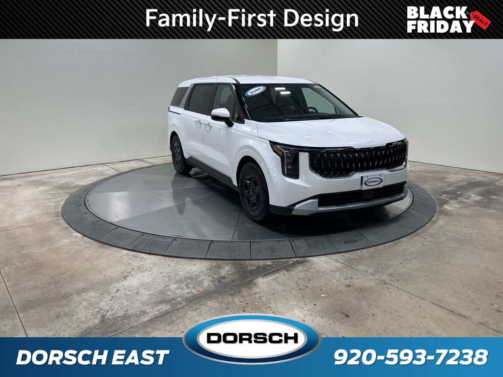3.51 Axle Ratio, 3rd row seats: split-bench, 4-Wheel Disc Brakes, 6 Speakers, 6.5J x 17" Alloy Wheels, ABS brakes, Air Conditioning, AM/FM radio: SiriusXM, Apple CarPlay & Android Auto, Artificial Leather Seat Trim, Auto High-beam Headlights, Auto-Dimming Mirror w/HomeLink, Automatic temperature control, Brake assist, Bumpers: body-color, Cargo Net, Carpeted Floor Mats (8-Passenger), Compass, Custom Wheels, Delay-off headlights, Driver door bin, Driver vanity mirror, Dual front impact airbags, Dual front side impact airbags, Electronic Stability Control, Emergency communication system, Exterior Parking Camera Rear, Four wheel independent suspension, Front anti-roll bar, Front Bucket Seats, Front Center Armrest, Front dual zone A/C, Front reading lights, Fully automatic headlights, Heated door mirrors, Heated Front Bucket Seats, Heated front seats, Illuminated entry, Knee airbag, Leather Shift Knob, Leather steering wheel, Low tire pressure warning, Navigation System, Occupant sensing airbag, Outside temperature display, Overhead airbag, Overhead console, Panic alarm, Passenger door bin, Passenger vanity mirror, Power door mirrors, Power driver seat, Power steering, Power windows, Radio: AM/FM/HD Audio System, Rear air conditioning, Rear anti-roll bar, Rear reading lights, Rear window defroster, Rear window wiper, Reclining 3rd row seat, Remote keyless entry, Security system, Small First Aid Kit, Speed control, Speed-sensing steering, Split folding rear seat, Spoiler, Steering wheel mounted audio controls, Tachometer, Telescoping steering wheel, Tilt steering wheel, Tow Hitch, Traction control, Trip computer, Turn signal indicator mirrors, Variably intermittent wipers, Wheel Locks. 18/26 City/Highway MPG 2026 Kia Carnival LXS