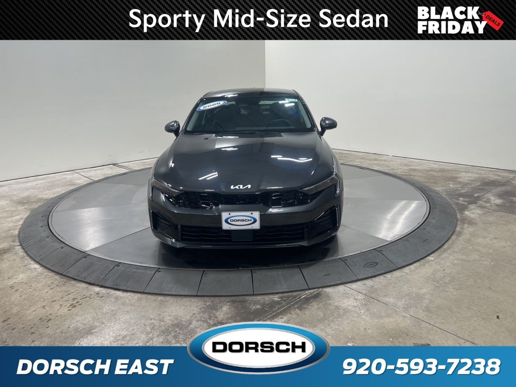 12 Speakers, 4-Wheel Disc Brakes, ABS brakes, Air Conditioning, AM/FM radio: SiriusXM, Auto High-beam Headlights, Automatic temperature control, Brake assist, Bumpers: body-color, Custom Wheels, Delay-off headlights, Driver door bin, Driver vanity mirror, Dual front impact airbags, Dual front side impact airbags, Electronic Stability Control, Emergency communication system: Kia Connect (includes 1 year free trial), Four wheel independent suspension, Front anti-roll bar, Front Bucket Seats, Front Center Armrest, Front dual zone A/C, Front reading lights, Fully automatic headlights, Heated door mirrors, Heated front seats, Heated steering wheel, Illuminated entry, Knee airbag, Leather Shift Knob, Leather steering wheel, Low tire pressure warning, Memory seat, Navigation System, Occupant sensing airbag, Outside temperature display, Overhead airbag, Overhead console, Panic alarm, Passenger door bin, Passenger vanity mirror, Power door mirrors, Power driver seat, Power moonroof, Power passenger seat, Power steering, Power windows, Radio data system, Radio: AM/FM Audio System, Rear anti-roll bar, Rear reading lights, Rear seat center armrest, Rear side impact airbag, Rear window defroster, Remote keyless entry, Security system, Speed control, Speed-sensing steering, Split folding rear seat, Steering wheel mounted audio controls, SynTex Seat Trim, Tachometer, Telescoping steering wheel, Tilt steering wheel, Traction control, Trip computer, Turn signal indicator mirrors, Variably intermittent wipers, Ventilated front seats, Wheels: 18" x 7.5J Gloss Black Machined Finish Alloy. Priced below KBB Fair Purchase Price! 25/36 City/Highway MPG 2026 Kia K5 EX