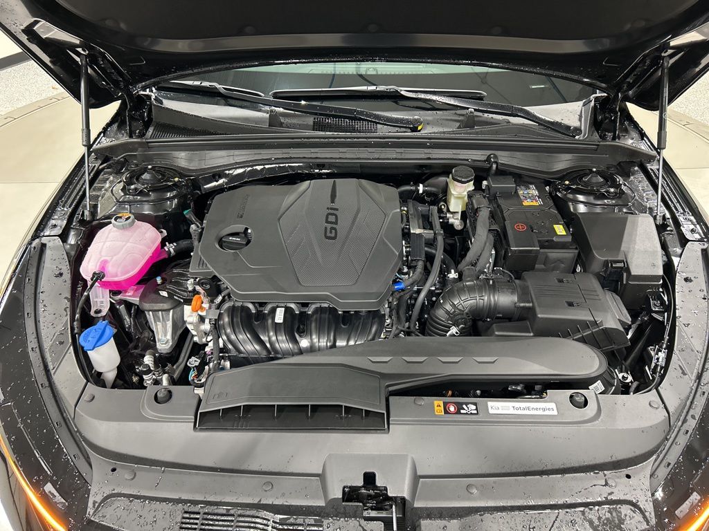 4-Wheel Disc Brakes, 6 Speakers, ABS brakes, Air Conditioning, AM/FM radio: SiriusXM, Apple CarPlay & Android Auto, Auto High-beam Headlights, Auto-Dimming Mirror with HomeLink, Automatic temperature control, Brake assist, Bumpers: body-color, Carpeted Floor Mats, Custom Wheels, Delay-off headlights, Driver door bin, Driver vanity mirror, Dual front impact airbags, Dual front side impact airbags, Electronic Stability Control, Emergency communication system: Kia Connect (includes 1 year free trial), Four wheel independent suspension, Front anti-roll bar, Front Bucket Seats, Front Center Armrest, Front dual zone A/C, Front fog lights, Front reading lights, Fully automatic headlights, Heated door mirrors, Heated Front Bucket Seats, Heated front seats, Heated steering wheel, Illuminated entry, Knee airbag, Leather Shift Knob, Leather steering wheel, LED Trunk Light, Low tire pressure warning, Navigation System, Occupant sensing airbag, Outside temperature display, Overhead airbag, Overhead console, Panic alarm, Passenger door bin, Passenger vanity mirror, Power door mirrors, Power driver seat, Power steering, Power windows, Radio data system, Radio: AM/FM Audio System, Rear anti-roll bar, Rear seat center armrest, Rear side impact airbag, Rear window defroster, Remote keyless entry, Security system, Speed control, Speed-sensing steering, Split folding rear seat, Sport steering wheel, Steering wheel mounted audio controls, Tachometer, Telescoping steering wheel, Tilt steering wheel, Traction control, Trip computer, Turn signal indicator mirrors, Variably intermittent wipers, Wheels: 18" x 7.5J Gloss Black Machined Finish Alloy. 24/33 City/Highway MPG 2026 Kia K5 GT-Line