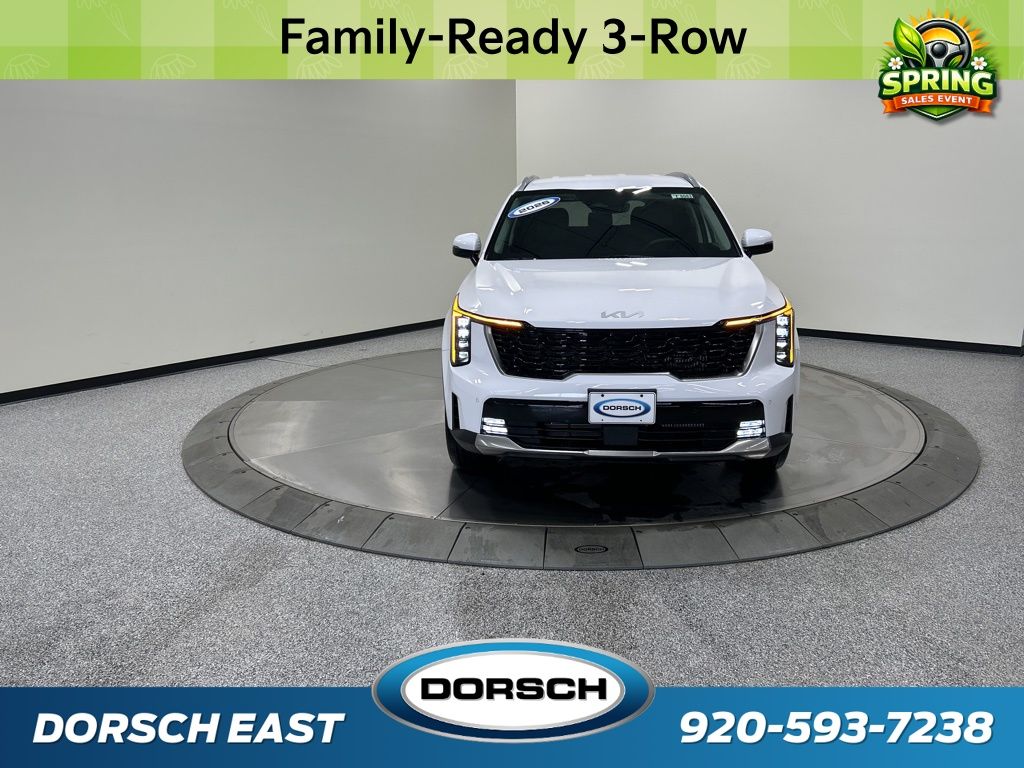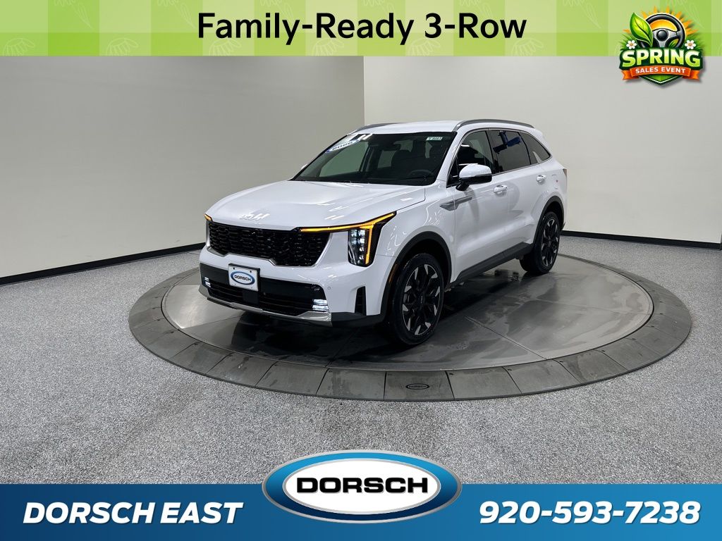 AWD, 3rd row seats: split-bench, 4-Wheel Disc Brakes, 6 Speakers, ABS brakes, Air Conditioning, AM/FM radio: SiriusXM, Apple CarPlay & Android Auto, Auto High-beam Headlights, Auto-dimming Rear-View mirror, Automatic temperature control, Brake assist, Bumpers: body-color, Carpeted Floor Mats, Custom Wheels, Delay-off headlights, Driver door bin, Driver vanity mirror, Dual front impact airbags, Dual front side impact airbags, Electronic Stability Control, Emergency communication system: 911 Connect, Exterior Parking Camera Rear, Four wheel independent suspension, Front anti-roll bar, Front Bucket Seats, Front Center Armrest, Front dual zone A/C, Front fog lights, Front reading lights, Fully automatic headlights, Heated door mirrors, Heated Front Bucket Seats, Heated front seats, Illuminated entry, Knee airbag, Leather Shift Knob, Leather steering wheel, Low tire pressure warning, Navigation System, Occupant sensing airbag, Outside temperature display, Overhead airbag, Overhead console, Panic alarm, Passenger door bin, Passenger vanity mirror, Power door mirrors, Power driver seat, Power Liftgate, Power passenger seat, Power steering, Power windows, Radio data system, Radio: AM/FM Standard Sound System, Rear anti-roll bar, Rear reading lights, Rear seat center armrest, Rear side impact airbag, Rear window defroster, Rear window wiper, Remote keyless entry, Security system, Speed control, Speed-sensing steering, Split folding rear seat, Spoiler, Steering wheel mounted audio controls, SynTex Artificial Leather Seat Trim, Tachometer, Telescoping steering wheel, Tilt steering wheel, Tow Hitch, Traction control, Trip computer, Turn signal indicator mirrors, Variably intermittent wipers, Wheels: 20" Machine-Finished Gloss Black Alloy, AWD. New Price! 20/27 City/Highway MPG 2026 Kia Sorento EX Price includes: $2500 - Kia Customer Cash. Exp. 03/31/2026
