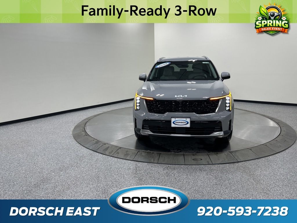 AWD, 3rd row seats: split-bench, 4-Wheel Disc Brakes, 6 Speakers, ABS brakes, Air Conditioning, AM/FM radio: SiriusXM, Apple CarPlay & Android Auto, Auto High-beam Headlights, Auto-Dimming Mirror with HomeLink (PnP), Auto-dimming Rear-View mirror, Automatic temperature control, Brake assist, Bumpers: body-color, Carpeted Floor Mats, Custom Wheels, Delay-off headlights, Driver door bin, Driver vanity mirror, Dual front impact airbags, Dual front side impact airbags, Electronic Stability Control, Emergency communication system: 911 Connect, Exterior Parking Camera Rear, Four wheel independent suspension, Front anti-roll bar, Front Bucket Seats, Front Center Armrest, Front dual zone A/C, Front fog lights, Front reading lights, Fully automatic headlights, Heated door mirrors, Heated Front Bucket Seats, Heated front seats, Illuminated entry, Knee airbag, Leather Shift Knob, Leather steering wheel, Low tire pressure warning, Navigation System, Occupant sensing airbag, Outside temperature display, Overhead airbag, Overhead console, Panic alarm, Passenger door bin, Passenger vanity mirror, Power door mirrors, Power driver seat, Power Liftgate, Power passenger seat, Power steering, Power windows, Radio data system, Radio: AM/FM Standard Sound System, Rear anti-roll bar, Rear reading lights, Rear seat center armrest, Rear side impact airbag, Rear window defroster, Rear window wiper, Remote keyless entry, Security system, Speed control, Speed-sensing steering, Split folding rear seat, Spoiler, Steering wheel mounted audio controls, SynTex Artificial Leather Seat Trim, Tachometer, Telescoping steering wheel, Tilt steering wheel, Tow Hitch, Traction control, Trip computer, Turn signal indicator mirrors, Variably intermittent wipers, Wheels: 20" Machine-Finished Gloss Black Alloy, AWD. 20/27 City/Highway MPG 2026 Kia Sorento EX Price includes: $2500 - Kia Customer Cash. Exp. 03/31/2026