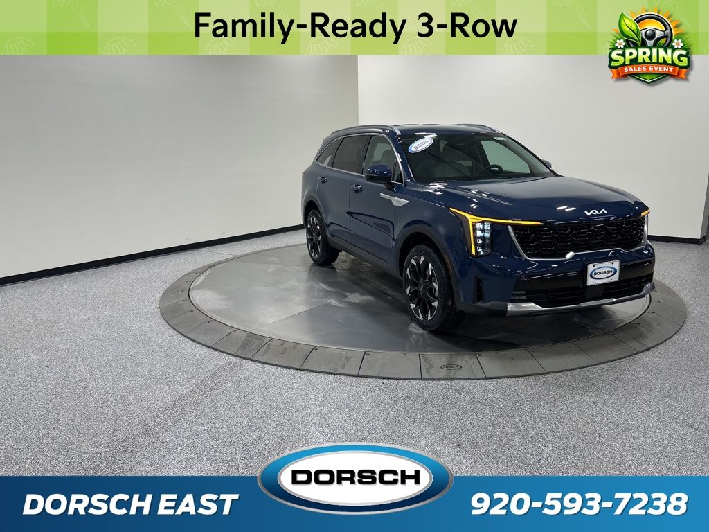 AWD, 3rd row seats: split-bench, 4-Wheel Disc Brakes, 6 Speakers, ABS brakes, Air Conditioning, AM/FM radio: SiriusXM, Apple CarPlay & Android Auto, Auto High-beam Headlights, Auto-dimming Rear-View mirror, Automatic temperature control, Brake assist, Bumpers: body-color, Carpeted Floor Mats, Custom Wheels, Delay-off headlights, Driver door bin, Driver vanity mirror, Dual front impact airbags, Dual front side impact airbags, Electronic Stability Control, Emergency communication system: 911 Connect, Exterior Parking Camera Rear, Four wheel independent suspension, Front anti-roll bar, Front Bucket Seats, Front Center Armrest, Front dual zone A/C, Front fog lights, Front reading lights, Fully automatic headlights, Heated door mirrors, Heated Front Bucket Seats, Heated front seats, Illuminated entry, Knee airbag, Leather Shift Knob, Leather steering wheel, Low tire pressure warning, Navigation System, Occupant sensing airbag, Outside temperature display, Overhead airbag, Overhead console, Panic alarm, Passenger door bin, Passenger vanity mirror, Power door mirrors, Power driver seat, Power Liftgate, Power passenger seat, Power steering, Power windows, Radio data system, Radio: AM/FM Standard Sound System, Rear anti-roll bar, Rear reading lights, Rear seat center armrest, Rear side impact airbag, Rear window defroster, Rear window wiper, Remote keyless entry, Security system, Speed control, Speed-sensing steering, Split folding rear seat, Spoiler, Steering wheel mounted audio controls, SynTex Artificial Leather Seat Trim, Tachometer, Telescoping steering wheel, Tilt steering wheel, Tow Hitch, Traction control, Trip computer, Turn signal indicator mirrors, Variably intermittent wipers, Wheels: 20" Machine-Finished Gloss Black Alloy, AWD. 20/27 City/Highway MPG 2026 Kia Sorento EX Price includes: $2500 - Kia Customer Cash. Exp. 03/31/2026