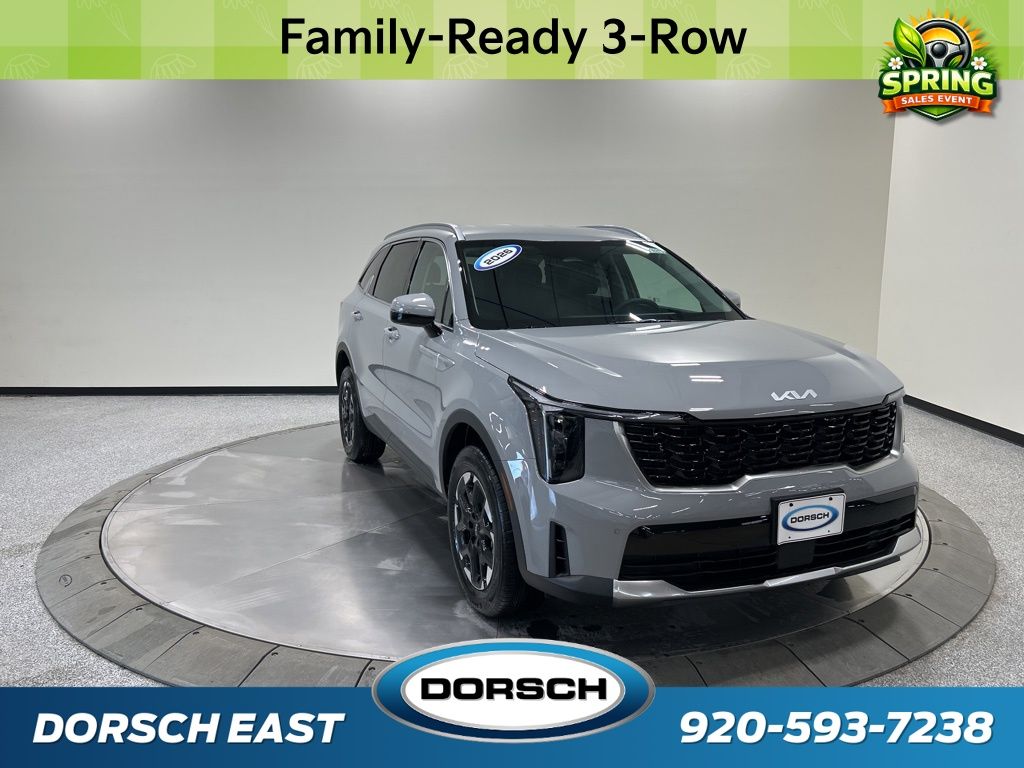 AWD, 3rd row seats: split-bench, 4-Wheel Disc Brakes, 6 Speakers, ABS brakes, Air Conditioning, AM/FM radio: SiriusXM, Apple CarPlay & Android Auto, Auto High-beam Headlights, Auto-Dimming Mirror with HomeLink, Automatic temperature control, Brake assist, Bumpers: body-color, Carpeted Floor Mats, Custom Wheels, Delay-off headlights, Driver door bin, Driver vanity mirror, Dual front impact airbags, Dual front side impact airbags, Electronic Stability Control, Emergency communication system: 911 Connect, Exterior Parking Camera Rear, Four wheel independent suspension, Front anti-roll bar, Front Bucket Seats, Front Center Armrest, Front dual zone A/C, Front reading lights, Fully automatic headlights, Heated door mirrors, Heated Front Bucket Seats, Heated front seats, Illuminated entry, Knee airbag, Leather Shift Knob, Leather steering wheel, Low tire pressure warning, Occupant sensing airbag, Outside temperature display, Overhead airbag, Overhead console, Panic alarm, Passenger door bin, Passenger vanity mirror, Power door mirrors, Power driver seat, Power steering, Power windows, Radio data system, Radio: AM/FM Standard Sound System, Rear anti-roll bar, Rear reading lights, Rear seat center armrest, Rear side impact airbag, Rear window defroster, Rear window wiper, Remote keyless entry, Security system, Speed control, Speed-sensing steering, Split folding rear seat, Spoiler, Steering wheel mounted audio controls, SynTex Artificial Leather Seat Trim, Tachometer, Telescoping steering wheel, Tilt steering wheel, Traction control, Trip computer, Turn signal indicator mirrors, Variably intermittent wipers, Wheels: 18" Gloss Black Alloy, AWD. New Price! 23/28 City/Highway MPG 2026 Kia Sorento S Price includes: $2500 - Kia Customer Cash. Exp. 03/31/2026