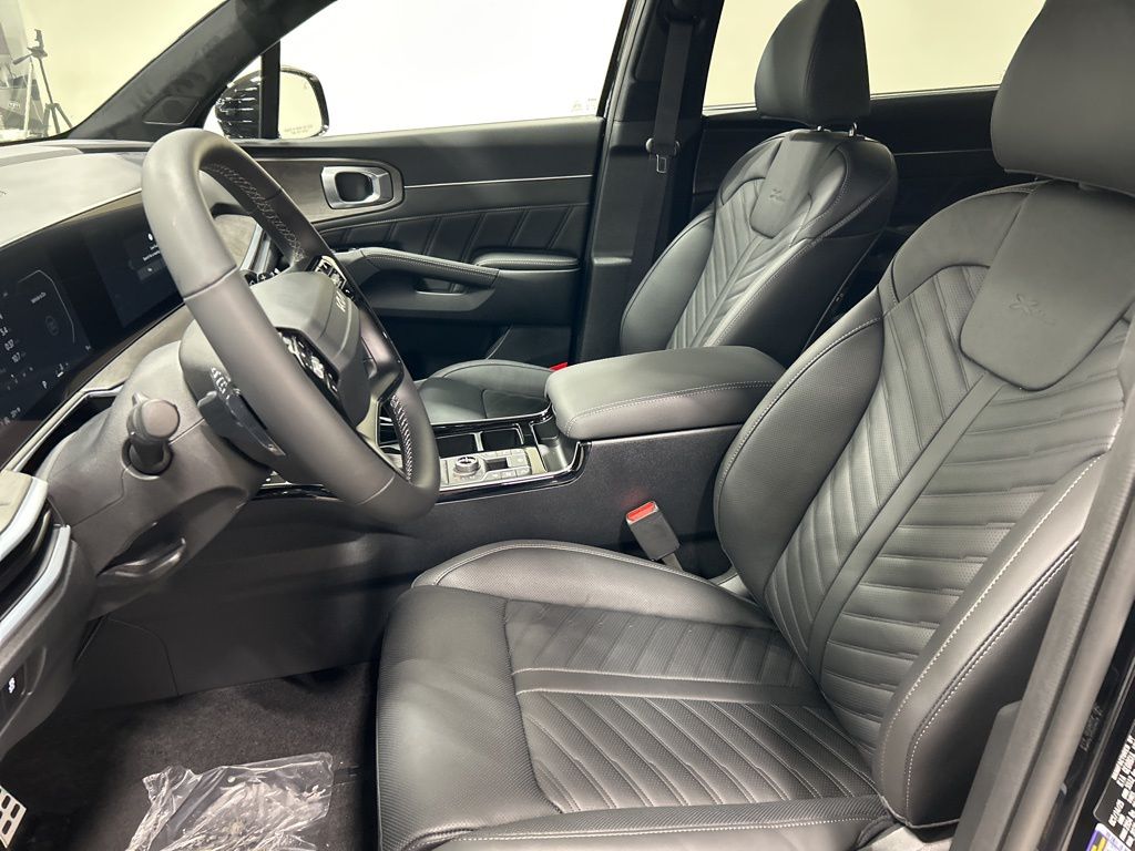 AWD, 12 Speakers, 3rd row seats: split-bench, 4-Wheel Disc Brakes, ABS brakes, Air Conditioning, AM/FM radio: SiriusXM, Apple CarPlay & Android Auto, Auto High-beam Headlights, Auto-dimming Rear-View mirror, Automatic temperature control, Brake assist, Bumpers: body-color, Carpeted Floor Mats, Custom Wheels, Delay-off headlights, Driver door bin, Driver vanity mirror, Dual front impact airbags, Dual front side impact airbags, Electronic Stability Control, Emergency communication system: 911 Connect, Exterior Parking Camera Rear, Four wheel independent suspension, Front anti-roll bar, Front Bucket Seats, Front Center Armrest, Front dual zone A/C, Front fog lights, Front reading lights, Front Skid Plate, Fully automatic headlights, Garage door transmitter: HomeLink, Heated & Ventilated Front Bucket Seats, Heated door mirrors, Heated front seats, Heated rear seats, Heated steering wheel, Illuminated entry, Knee airbag, Leather Shift Knob, Leather steering wheel, Low tire pressure warning, Memory seat, Navigation System, Occupant sensing airbag, Outside temperature display, Overhead airbag, Overhead console, Panic alarm, Passenger door bin, Passenger vanity mirror, Perforated Genuine Leather Seat Trim, Power door mirrors, Power driver seat, Power Liftgate, Power moonroof, Power passenger seat, Power steering, Power windows, Radio data system, Radio: AM/FM Bose Premium Audio System, Rain sensing wipers, Rear anti-roll bar, Rear reading lights, Rear side impact airbag, Rear window defroster, Rear window wiper, Remote keyless entry, Security system, Speed control, Speed-sensing steering, Split folding rear seat, Spoiler, Steering wheel mounted audio controls, Tachometer, Telescoping steering wheel, Tilt steering wheel, Tow Hitch, Traction control, Trip computer, Turn signal indicator mirrors, Variably intermittent wipers, Ventilated front seats, Wheels: 20" Gloss Black X-Line Alloy, AWD. 20/27 City/Highway MPG 2026 Kia Sorento X-Line SX Prestige